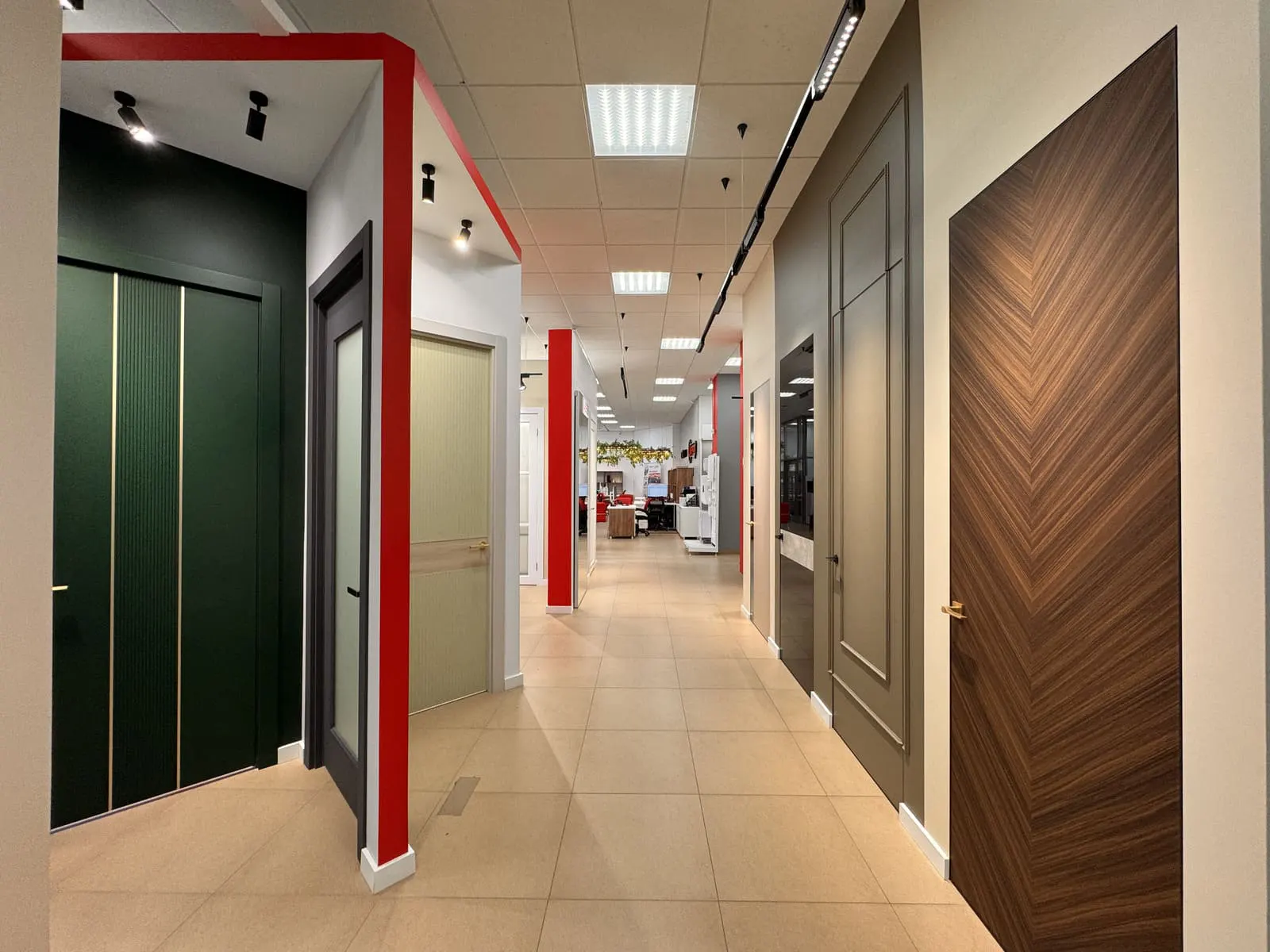 - Большой ассортимент. Мы предлагаем двери в классическом, современном и минималистичном стилях, а также изделия из различных материалов: дерева, МДФ, стали и стекла.